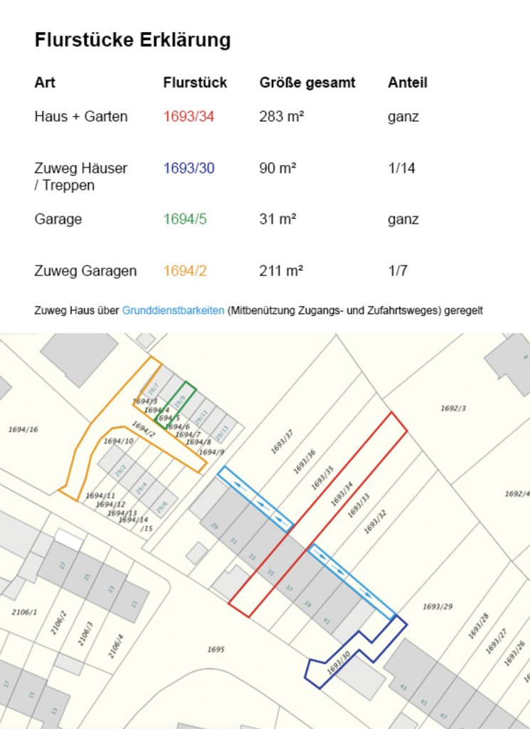 + Zuweg Garagen 1/7 Anteil von 211 m²